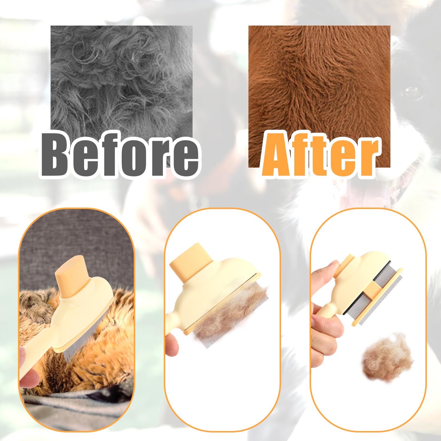 Self-Cleaning Design: Our pet hair removal combs can be self-cleaned with one button. Just press the button and the accumulated pet hair on the comb can be easily removed. It is very convenient and efficient, allowing you to easily complete the pet’s hair combing.