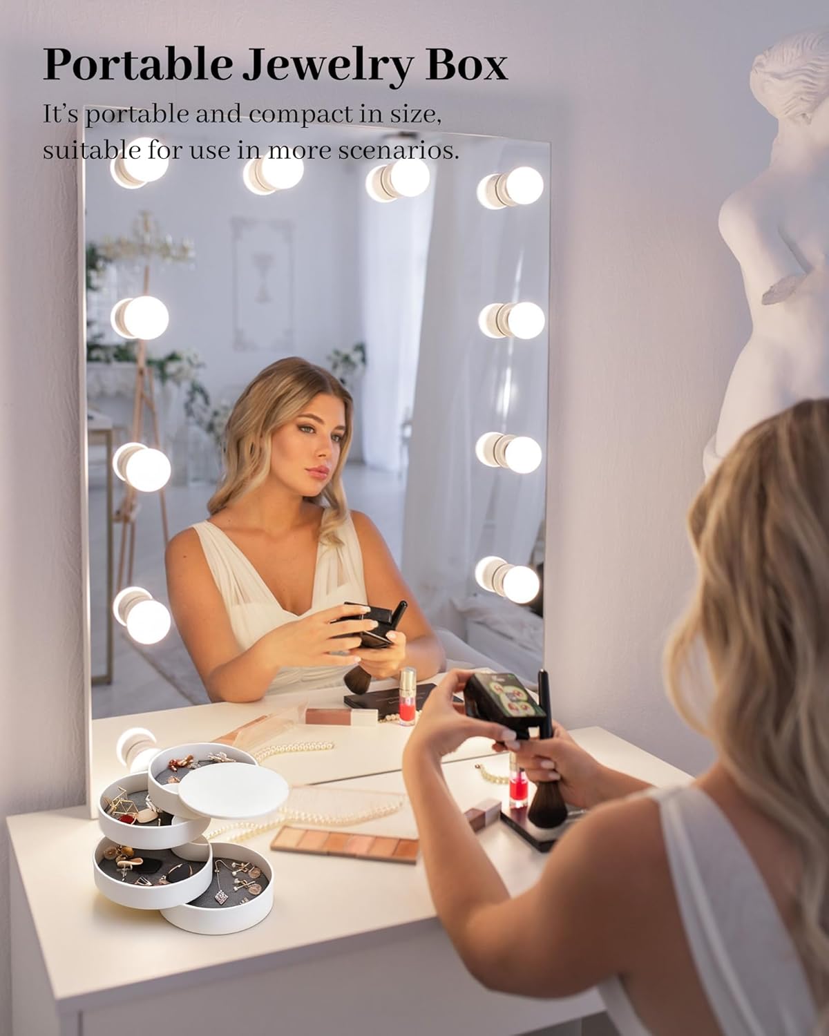 ♥【Rotating Jewelry Organizer】- Simple and modern style, rotate into any look you like, excellent dressing table decor; it’s a compact cylinder when closed, and isolate dust to better maintain the luster of jewelry.