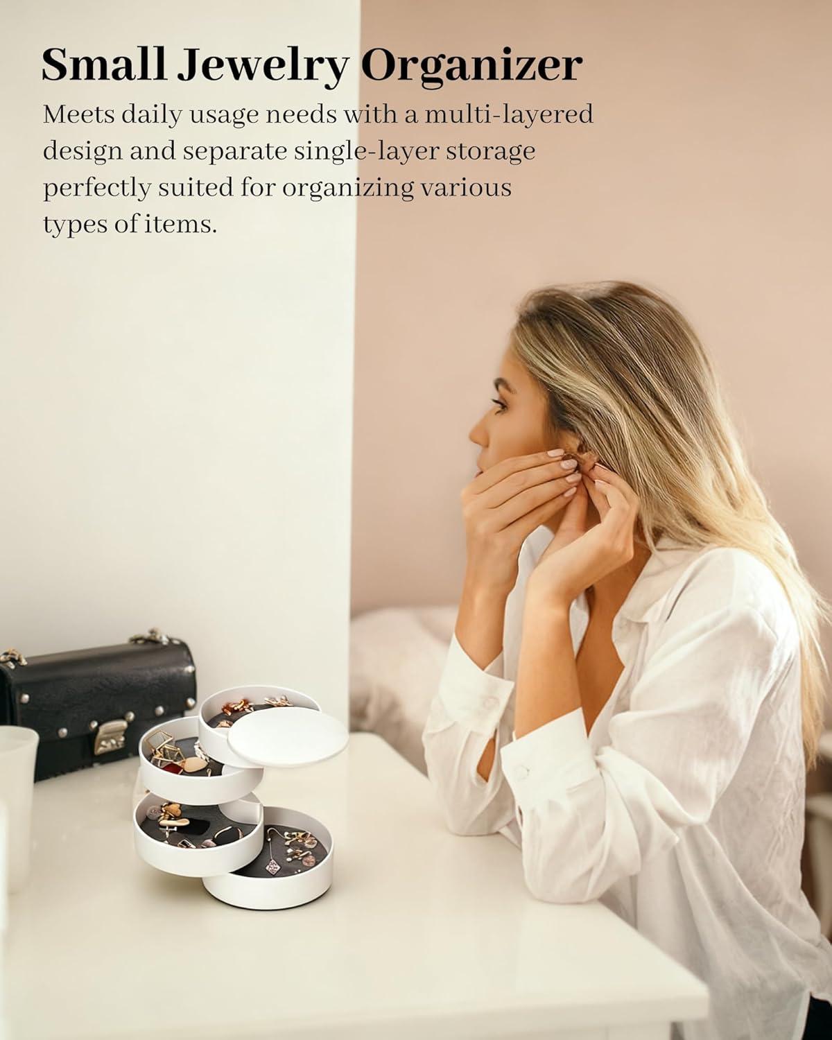 Be the first to review “CONBOLA Jewelry Organizer, Small Jewelry Storage Box Earring Holder for Women, 5-Layer Rotating Travel Jewelry Tray Case with Lid for Bracelets Rings Bracelets, Gift for Women Teen Girls(White)”